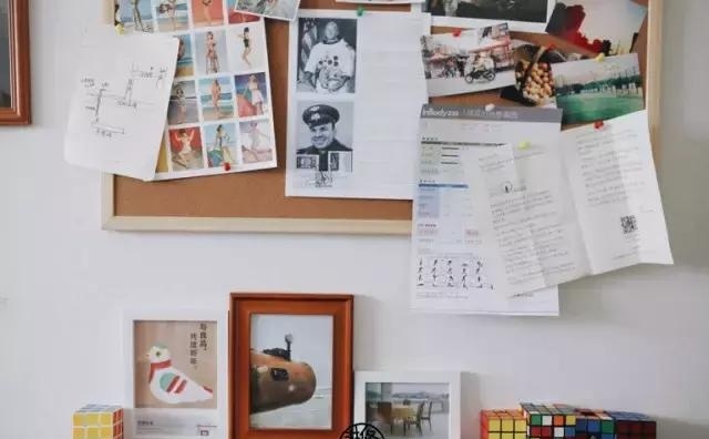 沙發(fā)后的軟木板會(huì)貼一些東磊自己拍的有回憶的照片或者雜志上剪下來的剪報(bào),隨性而多變的記錄著生活的點(diǎn)點(diǎn)滴滴。
